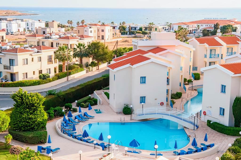 Paphos üdülőövezeti részén, a régészeti területek szomszédságában, a városközponttól és a kikötőtől kb. 2.5 km-re épült, több épületből álló, népszerű száznegyvennégy szobás szálloda.