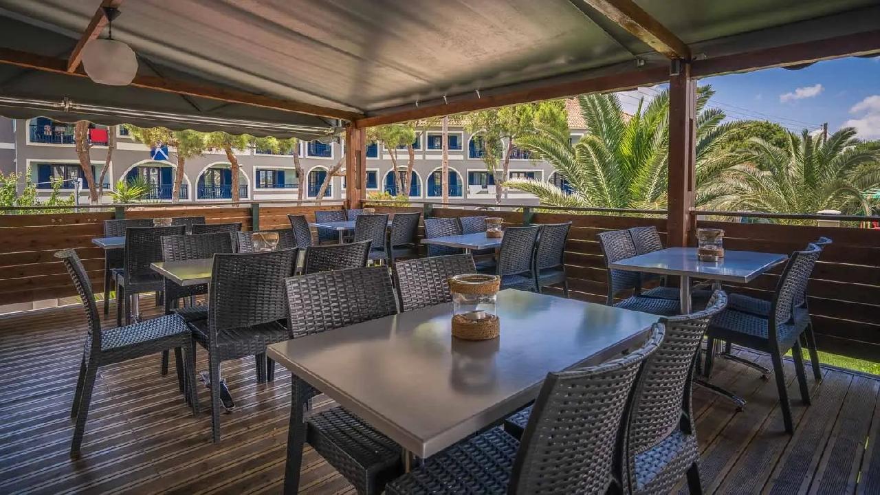A 160 szobás, fő- és több melléképületből álló hotel kb. 150 m-re fekszik a sekély homokos tengerparttól.