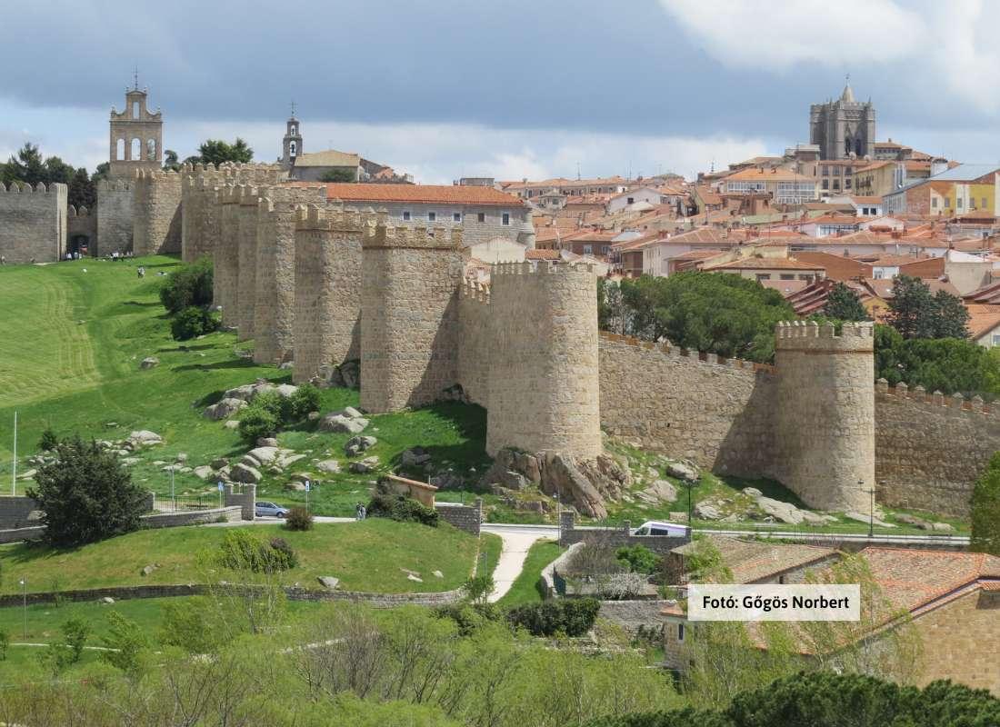 15:00 Elutazás a „Kövek és szentek városába”, az ékszerdoboz szépségű Ávilaba. Az 1.113 m magasságban fekvő város 1.000 éves, több mint 2.500 m hosszúságú gránitfalait a mai napig is 88 bástya erősíti. Ez Európa legépebben megőrzött városfala, belül Spanyolország legtöbb gótikus építményével (a lakosságszámhoz viszonyítva). A 12 m magas falakon belüli világ ismertebb becenevei: „Spanyolország 16. századi városa”, „A lovagok városa”. Ávilához érve először Ávilai Szent Teréz születési helyét és zarándoktemplomát látogatjuk meg, majd egy, a falak tetején, s utána egy falak körüli sétát is teszünk. Főbb látványosságok: katedrális – Superunda palota – Középkori vásárterek. Rövid szabadidő a katedrális terénél, majd hazautazás Madridba. Útközben néhány szó a Liga Santa (Szent Liga) koráról, a Spanyol- és az Oszmán Birodalom között zajló néhai világhatalmi versengésről. Szállás Madridban.