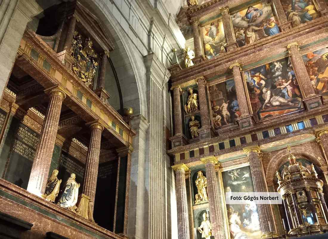 Reggeli és kijelentkezés után poggyászaink bepakolása a buszba. Utazás Európa (s egyben Földünk) legnagyobb reneszánsz épületegyütteséhez, a 940.000 m2 (!) méretű San Loprenzo del El Escorialhoz. Az El Escorial királyi kolostor – bazilika - királyi palota - uralkodói pantheon - birodalmi könyvtár és gyűjtemény - kórház, valamint iskola is egyben. II. Fülöp idején épült, máig is hihetetlen módon, csak 21 év alatt (1563-1584). Bazilikájának 95 méter magas kupolája alatt 48 oltár (!) előtt áldoztak (áldozhatunk) hálával az isteni gondviselésnek. 26 spanyol király, infánsok és főhercegek sírjai hirdetik a spanyol világ múltbéli befolyását, máig örök méltósággal néznek le ránk V. Károly és II. Fülöp szobrai, festményei. Az irdatlan, UNESCO világörökségi épület-óriás bejárása először közösen – majd egyénileg.