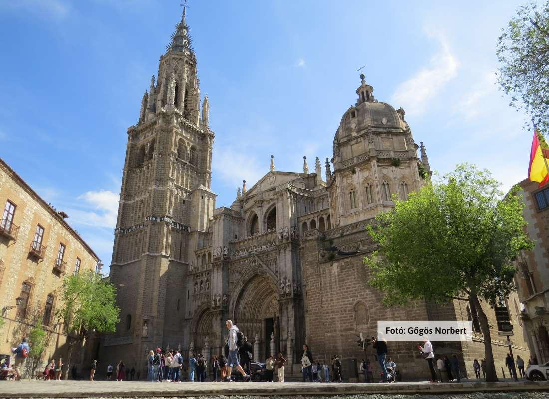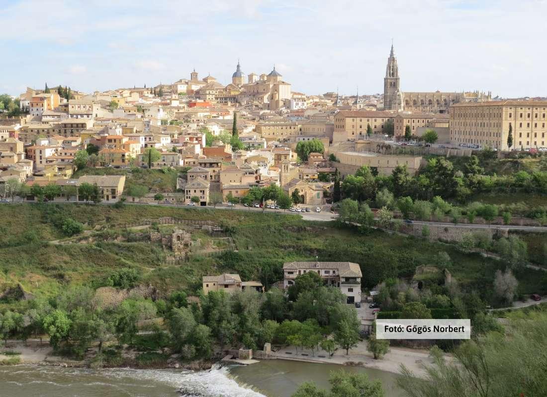 Reggeli után csomagjaink bepakolása a csomagszobába, majd találkozás helyi házigazdánkkal. Séta és feljutás az Escalares-vel a történelmi városrészbe, a Plaza de Zocodover főtérre. „Városnézés-időutazásunkat” a 3. században kezdjük, a római palotából átépített mór erődnél, az El Alcazarnál (kívülről). Sétánk következő állomása a del Tránsito zsinagóga, majd az El Greco Múzeum épülete (kívülről). Látogatás a Mezquita Christo de la Luz mecsetnél, majd az 1200-as évektől épült, gigászi Primada Santa María katedrális bejárása, közösen. El Greco egyik leghíresebb freskójának megtekintése az Iglesia Santo Tome-ban. Ebéd,- és szabadidőnk megkezdése előtt az ókori római eredetű hidak (San Martín és Alcantara) beazonosítása, majd szabadidő, az immár ismerős UNESCO világörökségi Felső-óvárosban. (Toledoi penge, konkvisztádor stílusú tőr, kard és páncélzat fakultatív beszerzési lehetősége.)